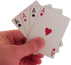 Hold (all) the aces/ Hold all the trumps/Hold all the cards: to have the advantages in a situation so that you are sure to win: มีความได้เปรียบในสถานการณ์ ดังนั้นคุณแน่ใจที่จะชนะ: ถือไพ่ที่เหนือกว่า.